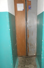Лифт в подъезде дома на ул. Профсоюзов, 18, уже давно разрисован разнообразными граффити, надписями, наклейками. Кнопки сожжены, двери разбиты, но это не самое страшное: задняя стенка лифта имеет щель размером с мяч и отходит к стене шахты лифта. Ездить в нем действительно страшно. По словам жителей, кабину в новый дом, который сдали в 2000 году, поставили старую, а может и двигатель, никто не проверял. В трех других подъездах стоят современные железные лифты.