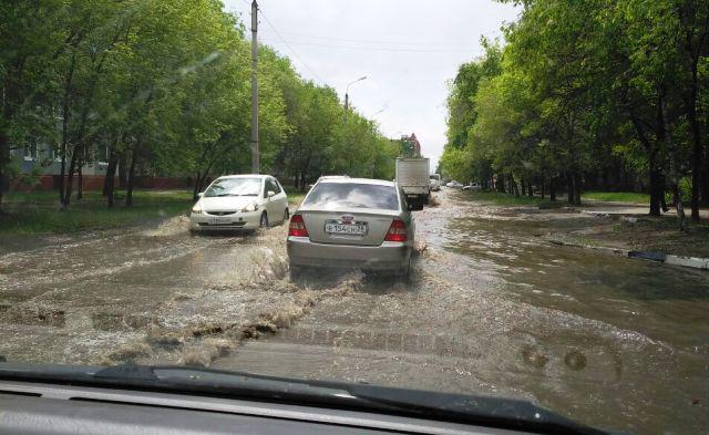 Буйство стихии в столице Приамурья привело к значительным трудностям в дорожном движении. Как сообщает ИА «Амур.инфо», сегодня на Благовещенск обрушились ливень и град. Дождевая вода затопила некоторые участки дорог в третьем микрорайоне.