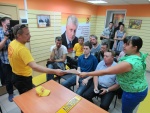 Далее мотоинспекцию ждали в мироновском Центре. Ведущий встречи Александр Голованов угостил гостей зауральским квасом и преподнес блюдо с символом Кургана – рыбкой пелядь. После небольшого рассказа об истории города еще один подарок передал Сергею Миронову руководитель Центра Андрей Кисель.