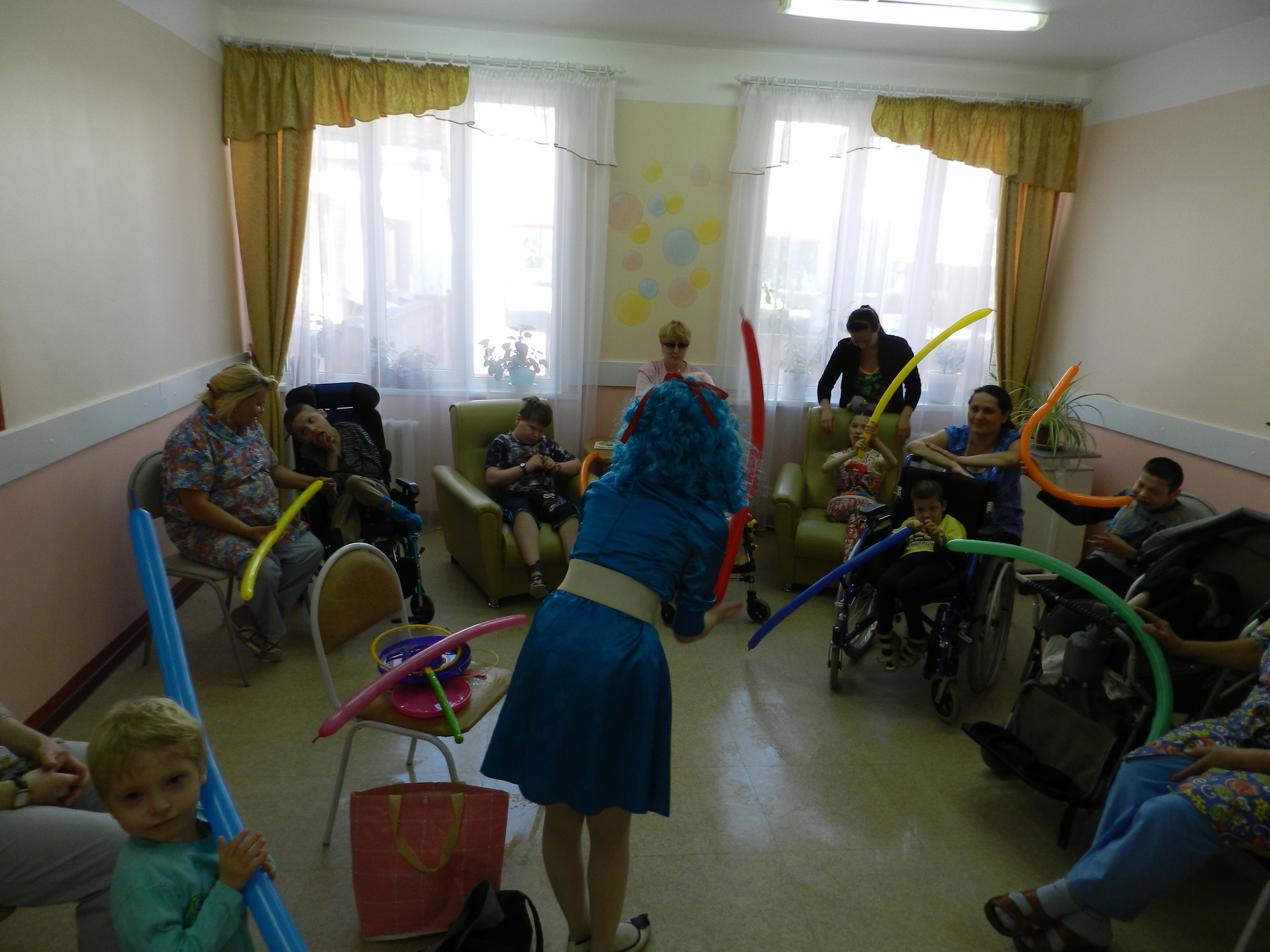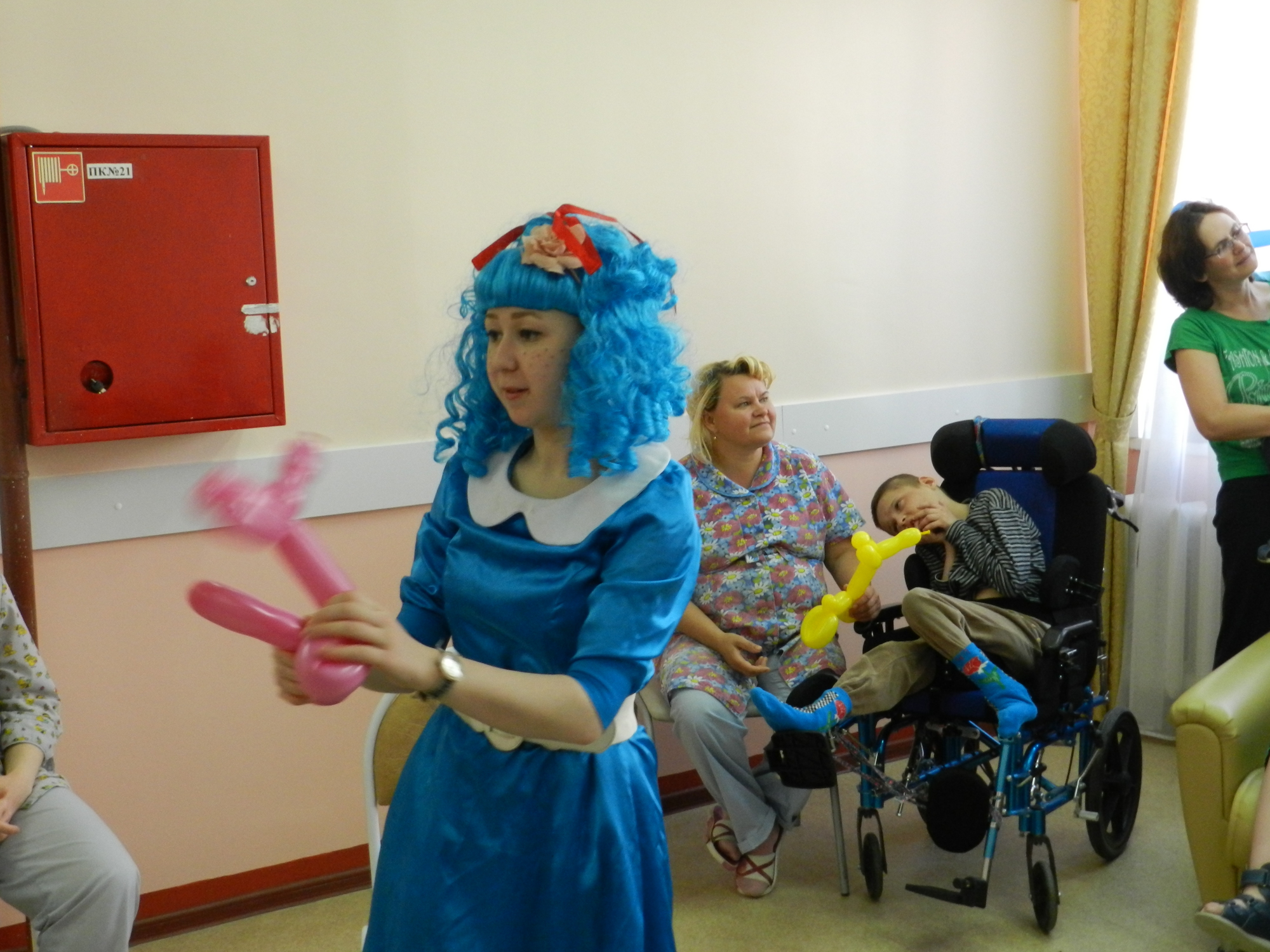 Волонтеры Центра защиты прав граждан приехали в гости к юным пациентам отделения паллиативной помощи городской детской больницы №13. Устроить детям праздник помогла сказочная Мальвина, которая рассмешила маленьких зрителей и подарила каждому небольшой сюрприз.
