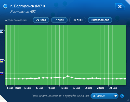 Мартовский график уровня радиации в Волгодонске Источник: www.russianatom.ru
