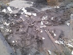 Вокруг домов грязь и строительный мусор. Однако рабочие решили использовать отходы, чтобы соорудить импровизированные дорожки. В итоге все дворы завалены пенопластом, старыми досками и битыми кирпичами, острые углы которых торчат из земли.