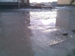 После дождя доски намокают, на них налипает грязь, и они становятся очень скользкими. Жители новостроек просто боятся ходить по двору, так как очень легко упасть и серьезно пораниться.