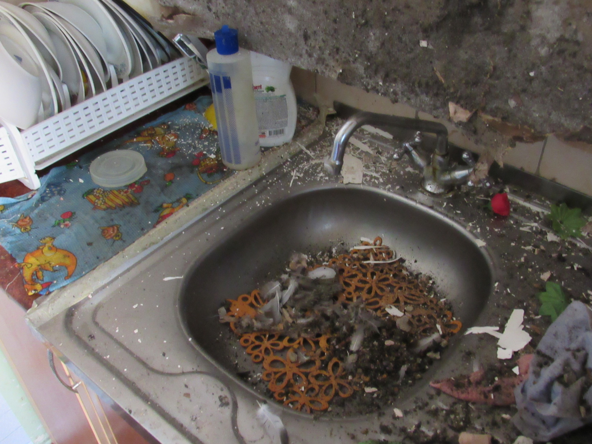 – Я побежала к соседке, у которой уже неделю капала вода с потолка: на нее упал потолок! Штукатурка намокла и обвалилась, а упавшая люстра ударила хозяйку током. Сейчас она лежит в больнице с диагнозом «электротравма». В наши квартиры зайти невозможно: везде голубиный помет, перья, вода и сырость. Мебель и одежду однозначно выбрасывать! – не может скрыть своего горя жительница дома.