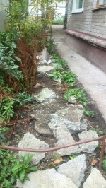 Коммунальщики убрали старый потрескавшийся слой отмостки, который по плану должны были заменить свежим. На удаление бетона ушло всего пару дней, а строительный мусор до сих пор остался на придомовой территории.