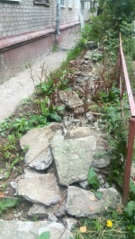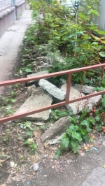 С конца июня перед окнами квартир на первом этаже дома валяются куски бетона.