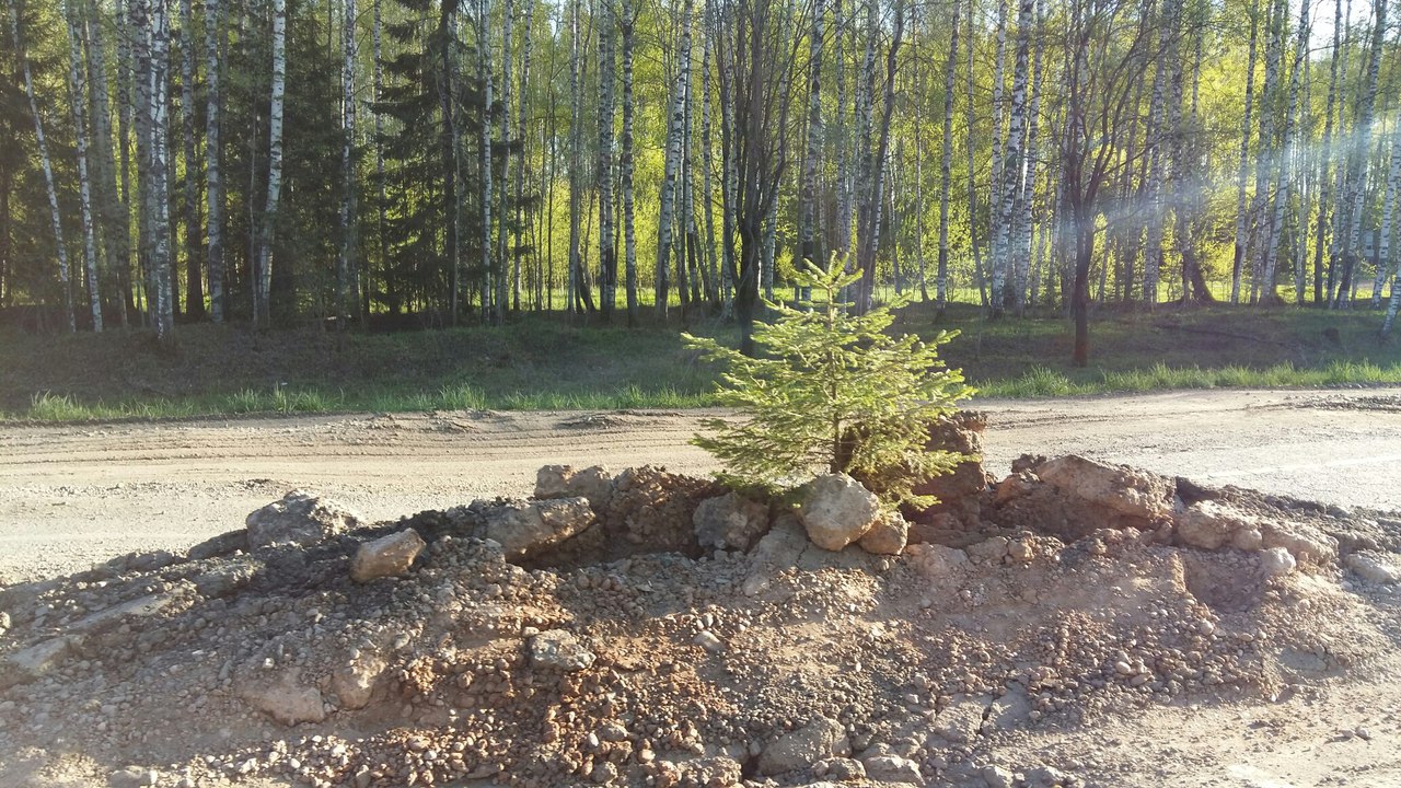 Краевые власти, в ведении которых находится участок дороги с “саженцем”, отказываются комментировать забавный казус и ссылаются на нехватку финансирования.