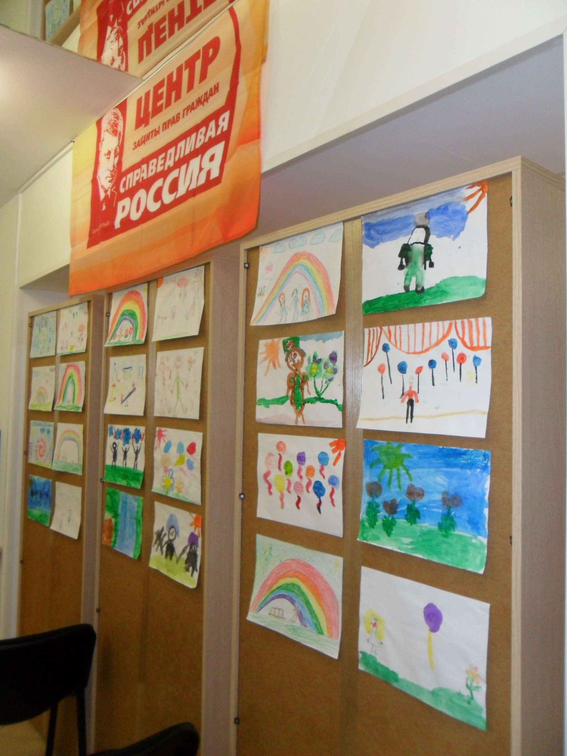 Теперь выставка детских произведений украшает Центр защиты прав граждан «Справедливая Россия» и напоминает всем взрослым об искреннем мире честности, правды и справедливости.