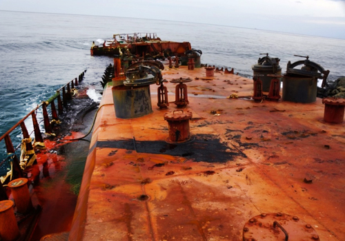 Периодические отчеты «эковахты» неутешительны – работы по утилизации проведены не в полном объеме, в танках есть мазут. Если наполовину утилизированный корпус накроет штормовой волной, емкости с мазутом будут подвержены вымыванию, и новое загрязнение акватории неизбежно. Хотя, по документам Госморспасслужбы, мазут был откачан в марте полностью. Выяснилось, что при мартовской температуре забортной воды +1° С часть мазута затвердела и осела на дно танков. Сейчас, при нагреве забортной воды и корпуса, внутри танков мазут перешел в жидкую фракцию и всплыл, создавая новые предпосылки для экологического загрязнения акватории залива. Однако повторная очитка танков невозможна, на нее нет средств. По информации «эковахты», ни повторного запроса, ни других действий со стороны властей в отношении ситуации с танкером не наблюдается.