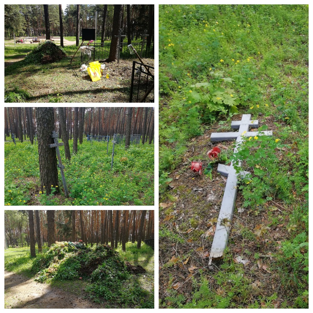 Убран весь мусор и сухой кустарник, скошена трава, установлены новые кресты.