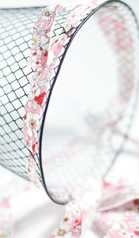 Оборачиваем корзину полосками ткани, периодически пропуская их сквозь сетку.