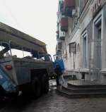 Но в этот раз правонарушители попались с поличным: «чистильщики» настолько зарвались, что начали снимать растяжку с третьего этажа многоквартирного дома, в котором располагается офис Центра защиты прав граждан «Справедливая Россия».
