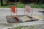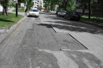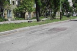 За все это время, что велись «ремонтные» работы, асфальтом залили только одну дыру. Остальные до сих пор остаются без внимания. Самую опасную яму, которую «вырезали» вокруг канализационного люка, перекрыли специальными ограждениями.