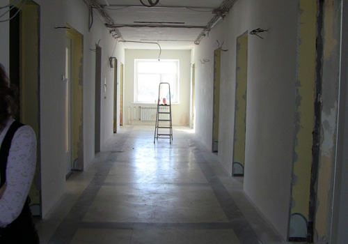 «Ремонтная эпопея» в ДШИ началась в 2015 году. В муниципалитете выделили деньги на капитальный ремонт учебных классов и концертного зала. Общая сумма двух госконтрактов составила около 20 миллионов рублей. Первым на очереди оказался зал – строители на объект не торопились, но когда к работам приступили, у коллектива сотрудников это вызвало прилив оптимизма – то, что школа имела до этого, концертным залом назвать можно было с огромной натяжкой. Ожидания, однако, ни к чему хорошему не привели: прямо посреди неоконченного ремонта подрядчик свернул работы и отправился доделывать недоработки в столовой школы №1. Детей там было больше, родителей больше, а значит больше и внимания местной администрации. Контракт с подрядчиком администрация школы расторгла в одностороннем порядке. В учебных классах ремонт дальше демонтажа стен и пола не пошел. Этот контракт школа также расторгла. Подрядчик обратился в суд, разбирательства идут до сих пор. А школа с той поры так и осталась в руинах незавершенного ремонта.