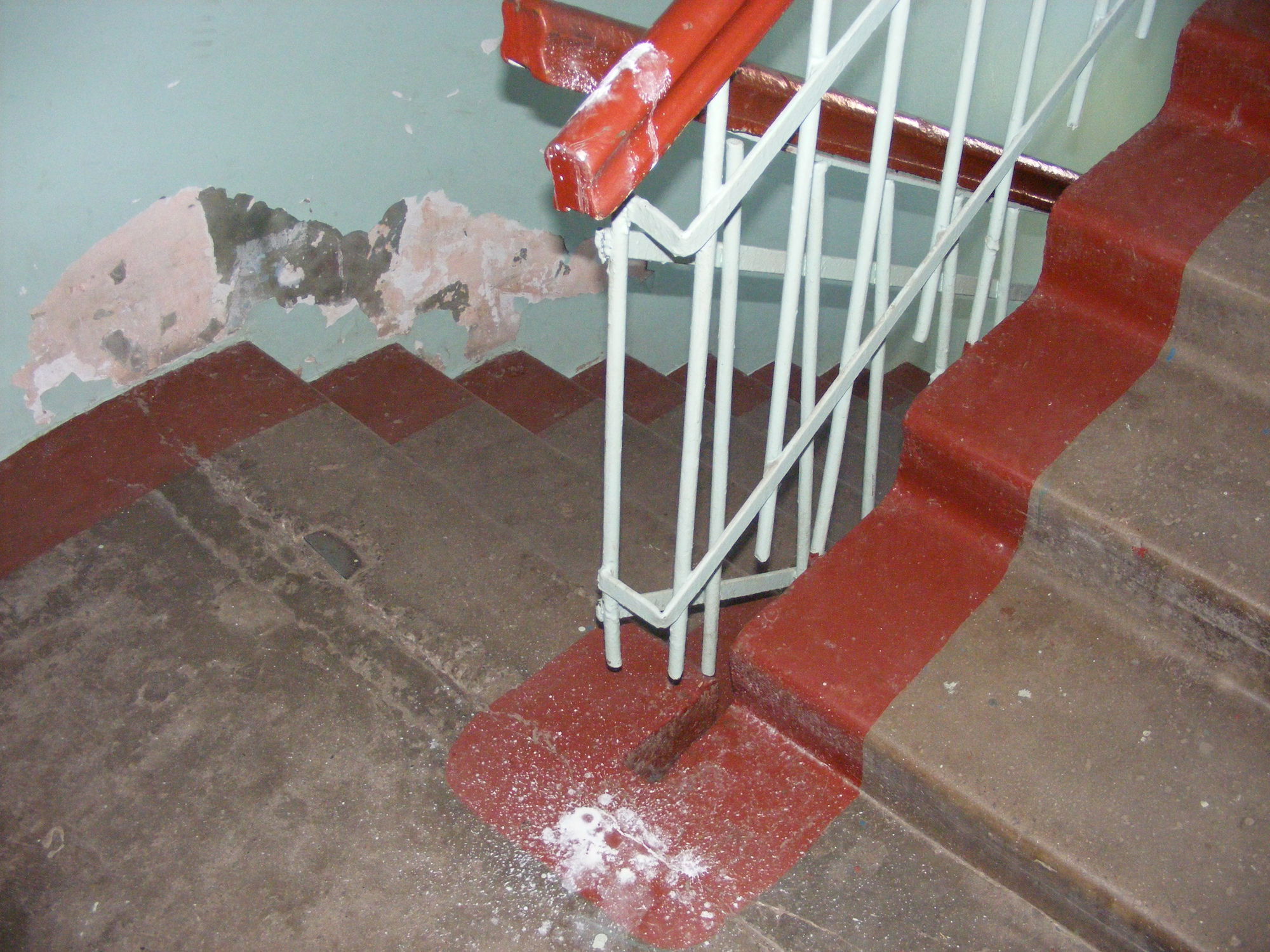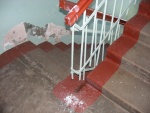 После каждого ливня квартиры на пятом этаже многоквартирного дома на ул. Горького, 10 заливает. Вода льется и в подъезде до первого этажа. На лестничной клетке видны белые капли побелки, на ступеньках – темные пятна воды, а на потолке и стенах – подсыхающие темно-желтые разводы.