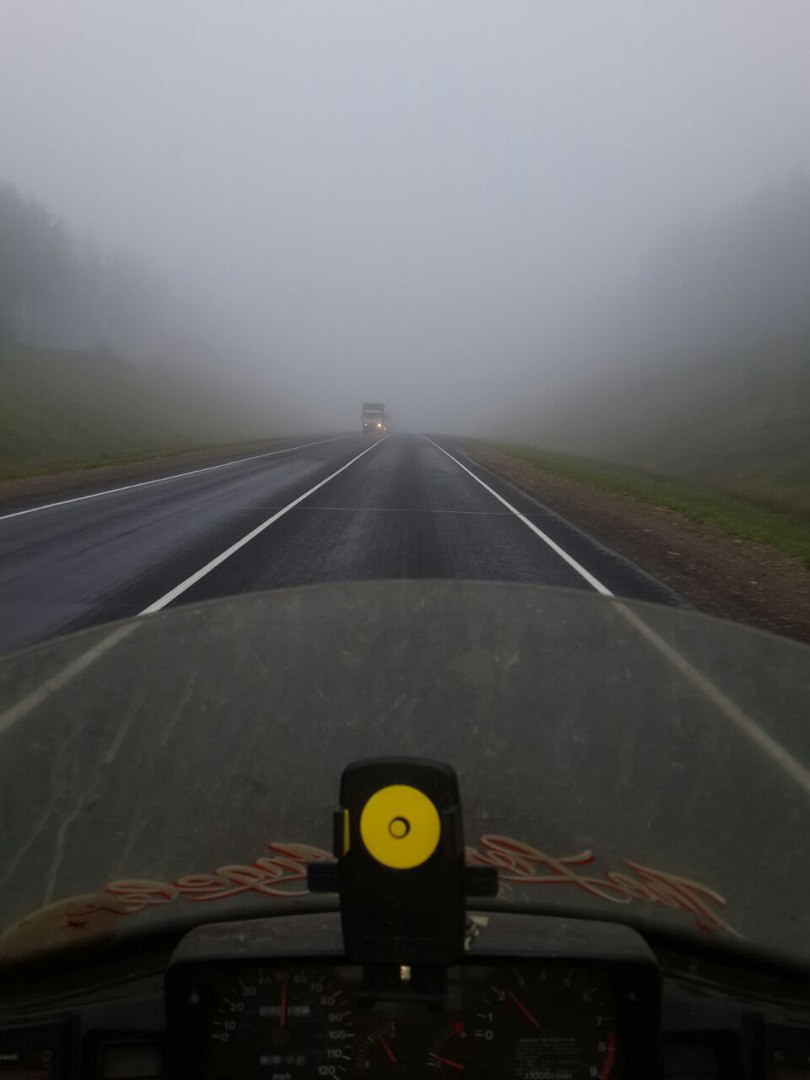 Не доезжая 200 километров до Красноярска, мотоциклисты попали в полосу густого тумана. К тому же сама трасса, как оказалось, не приспособлена для скоростной езды.