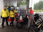 Команде байкеров пришлось ехать под проливным дождем, однако даже непогода не помешала героям мотоинспекции встретиться с жителями города, взять их наказы, а также поделиться своими впечатлениями относительно качества дорог и жизни населения.