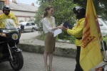 После брифинга Светлана Гут вручила байкерам удостоверения Федеральных инспекторов Центра защиты прав граждан – символические «корочки», подтверждающие важность экспедиции. Также лично в руки Алексею Гайдамашко передали наказы от жителей Владивостока – с почином, на удачу в дальнейших сборах.