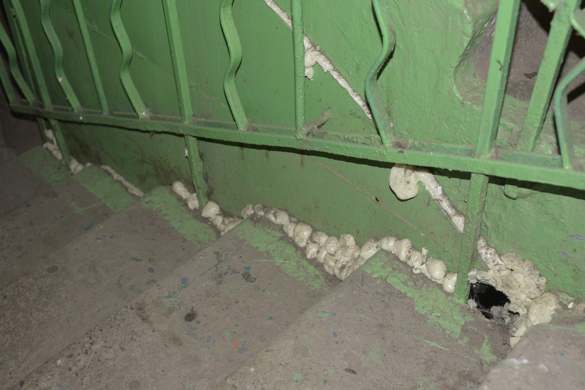 Ранее, когда жители дома жаловались в управляющую компанию на вонь из подвала, коммунальщики просто запенили щели в стыках между лестницей и входом в подвальное помещение.