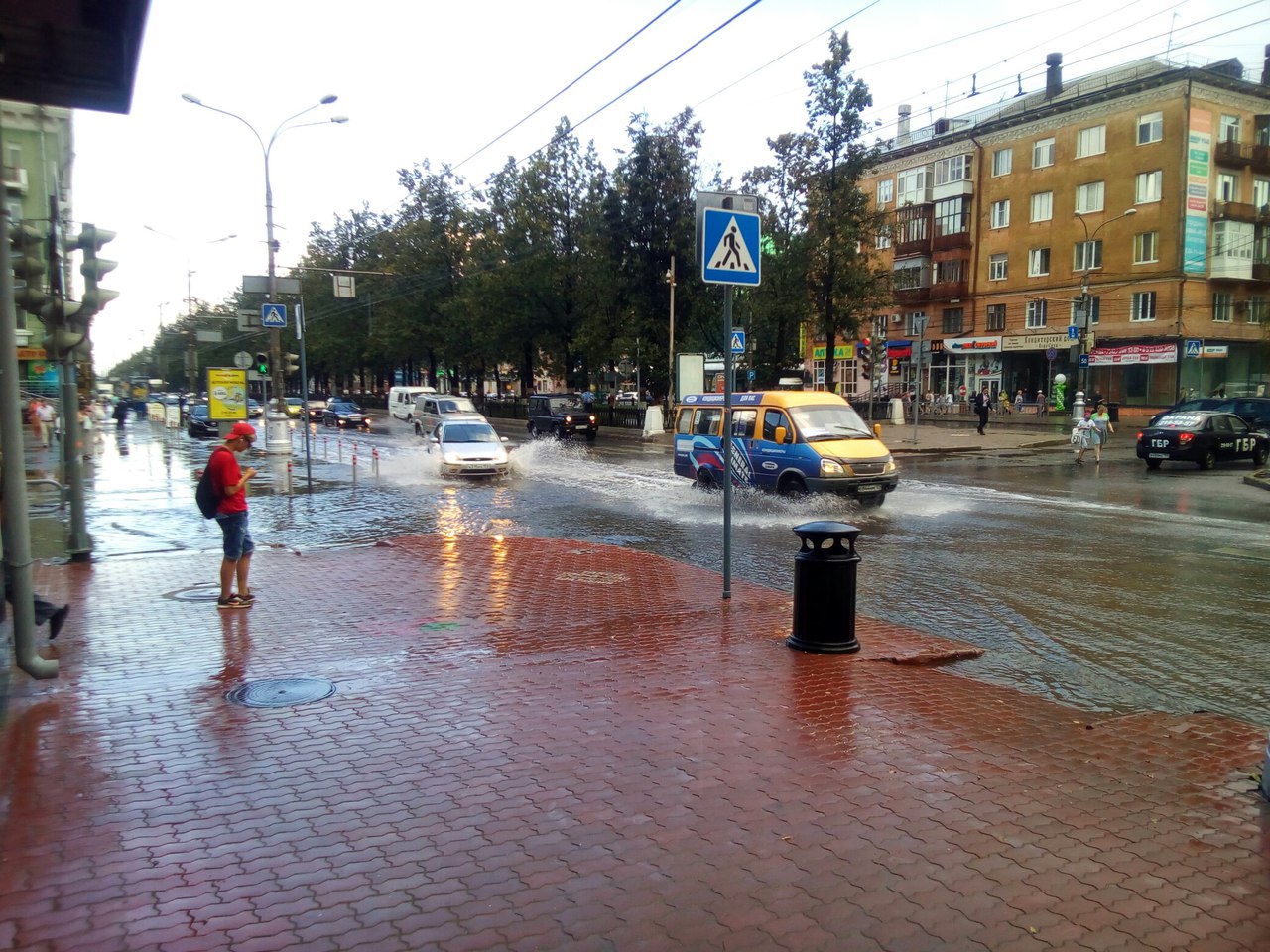 Непродолжительный дождь вызвал целые реки на центральных улицах Перми413