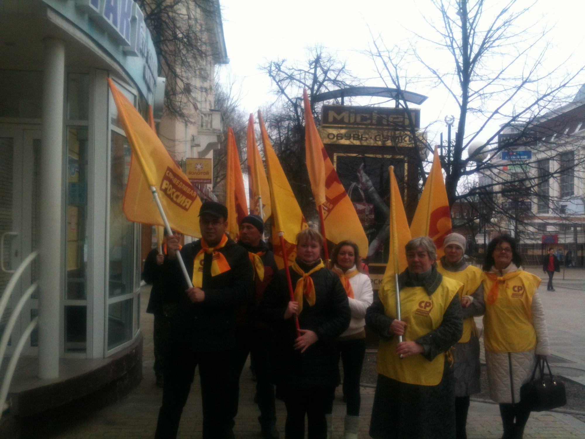 На митинг пришло более двухсот сторонников «Справедливой России». Основные лозунги мероприятия – «Крым наш!», «Крым – Россия!» и «Крым – русский полуостров».