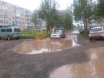 Жители дома на Космическом проезде, 5в на Камчатке много лет живут как на полигоне для испытания марсоходов. Именно так они «ласково» называют территорию у своего дома и возле соседних домов. Детская площадка, газоны, подходы к многоквартирному пятиэтажному строению уже не сохранили следов давнего асфальтирования. После дождей глубокие промоины во дворе может преодолеть только серьезная техника. Войти во двор, предположим, женщине с коляской – невозможно, так как кругом лужи, ямы и развороченная проезжая часть.