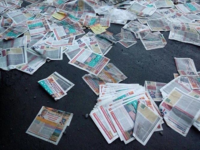 В последние дни перед выборами в Челябинске правящая партия в судорожной попытке заручиться голосами избирателей переходит все границы здравого смысла. Сначала у своих конкурентов-справедливороссов она ворует часть тиража агитационной газеты, а затем разбрасывает ее в одном из дворов города. И при этом сама печатает газету с черным пиаром против конкурентов.