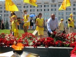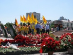 После короткой официальной части вся площадь почтила память героев войны минутой молчания. Затем под звуки военного оркестра началась церемония. Колонны к Вечному огню не иссякали, красных гвоздик на парапете становилось все больше. Члены Союза ветеранов десантных войск преклонили колено перед Вечным огнем, такой же церемонией почтили память героев кадеты и воспитанники патриотических клубов. Многие представители старшего поколения вытирали слезы, вспоминая о том ужасе, который пережили с началом войны. Скорбны были лица юношей и девушек, взрослых и детей. Россия помнит своих героев, помнит подвиг своего народа, победившего фашизм. Помнят и самарцы.