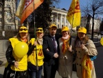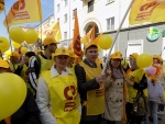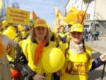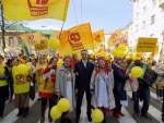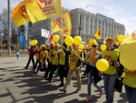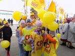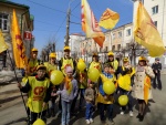 Колонна представителей «Справедливой России» и мироновского Центра выделялась ярко-желтым солнечным цветом и огромным количеством шаров и флагов с символикой партии.
