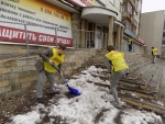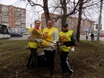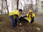 В субботу, 29 апреля, накануне майских праздников сотрудники Центра справедливости решили сделать «генеральную уборку». Вооружившись граблями, метлами и лопатами, они вышли на уборку территории около мироновского Центра, который расположен в девятиэтажном жилом доме №257 по ул. Удмуртской. Это одна из самых шумных и загазованных городских магистралей. За зиму на газонах накопилось немало мусора – стеклянных банок, окурков, бумаги.