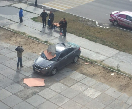 30 августа, около 10 утра от дома по адресу ул. 60 лет Октября, 21 отвалился кусок и попал прямо на припаркованный автомобиль. К счастью, люди не пострадали. Об этом сообщили очевидцы в соцсети.
