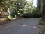 Тем временем, упавшее дерево перекрыло проезд во двор, пешеходный проход, завалило детскую площадку. Из-за него не смогут проехать сюда и автомобили специальных служб – скорая, пожарная, аварийная и другие автомашины