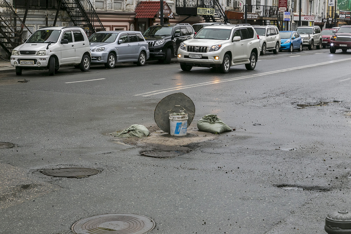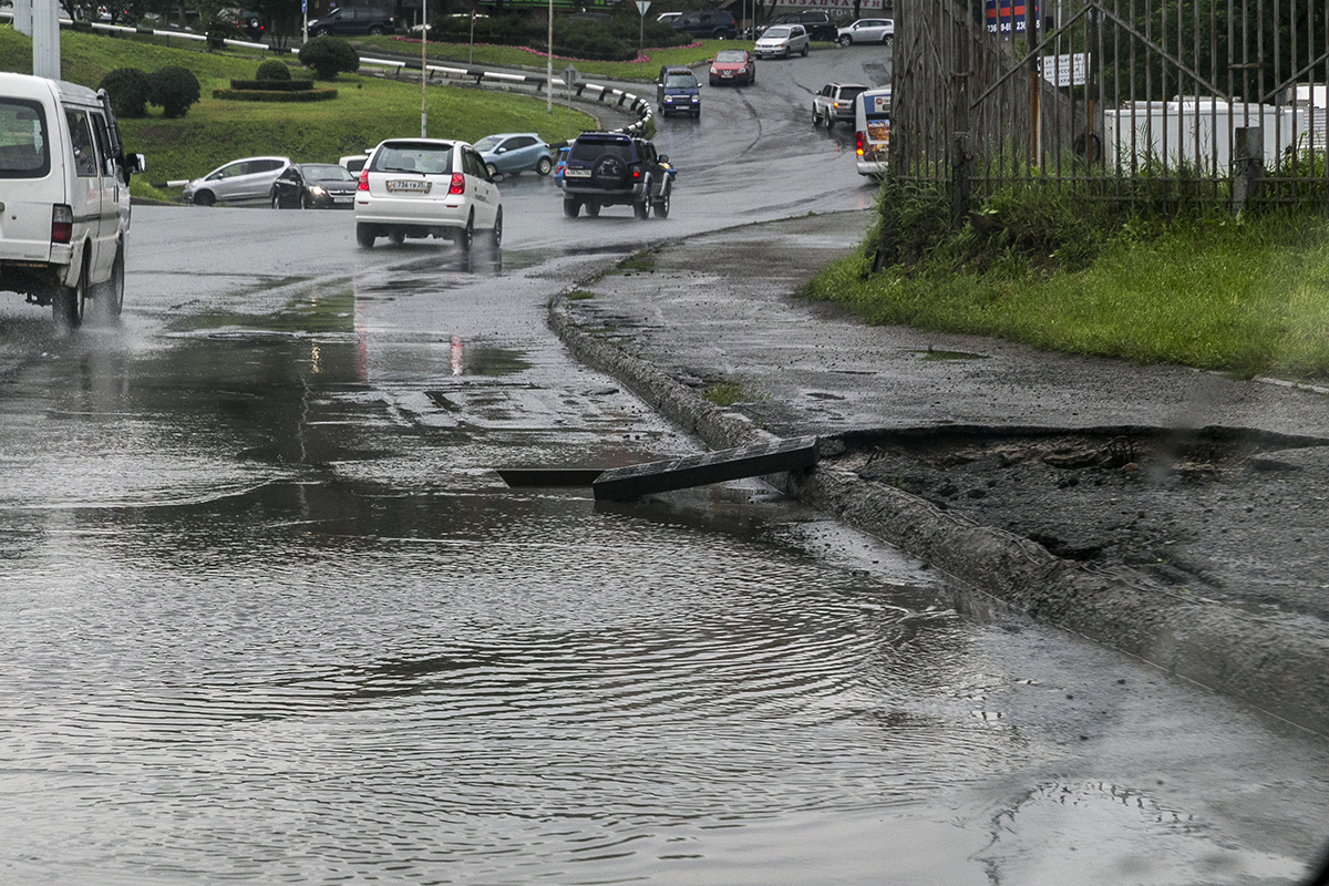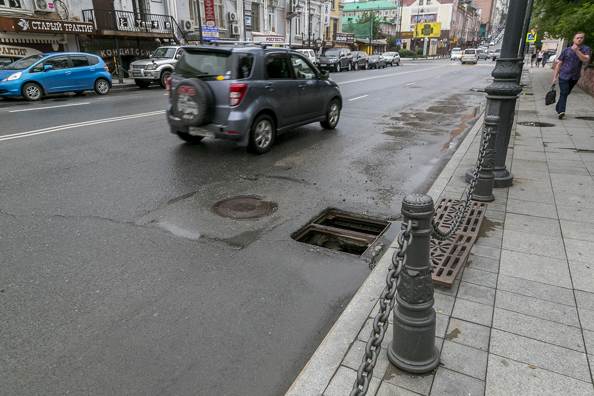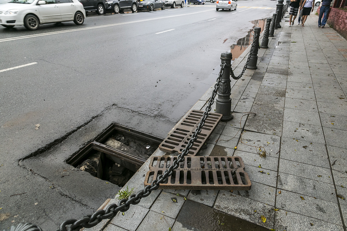 В некоторых районах города люки уходят под землю, и появляются глубокие ямы. А часть дорог последних лет вообще спроектирована без каких-либо стоков.
