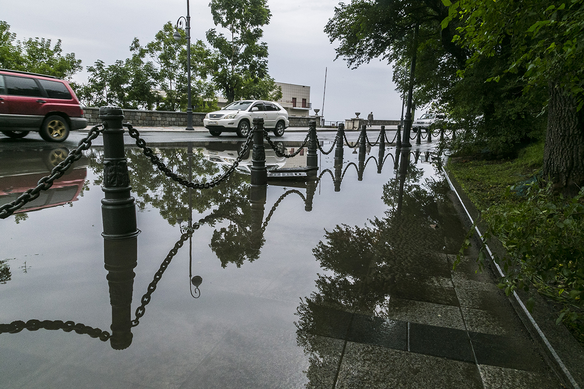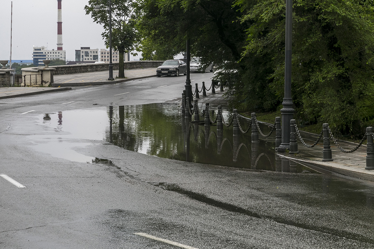 Ночью во Владивосток пришла непогода: ливневый дождь и сильный ветер добавили проблем горожанам. Коммунальные службы, чтобы уходила вода, убирают решетки с колодцев ливневой канализации – опасные провалы ничем не огораживают, а стоки, давно и безнадежно забитые, все равно не справляются с осадками.