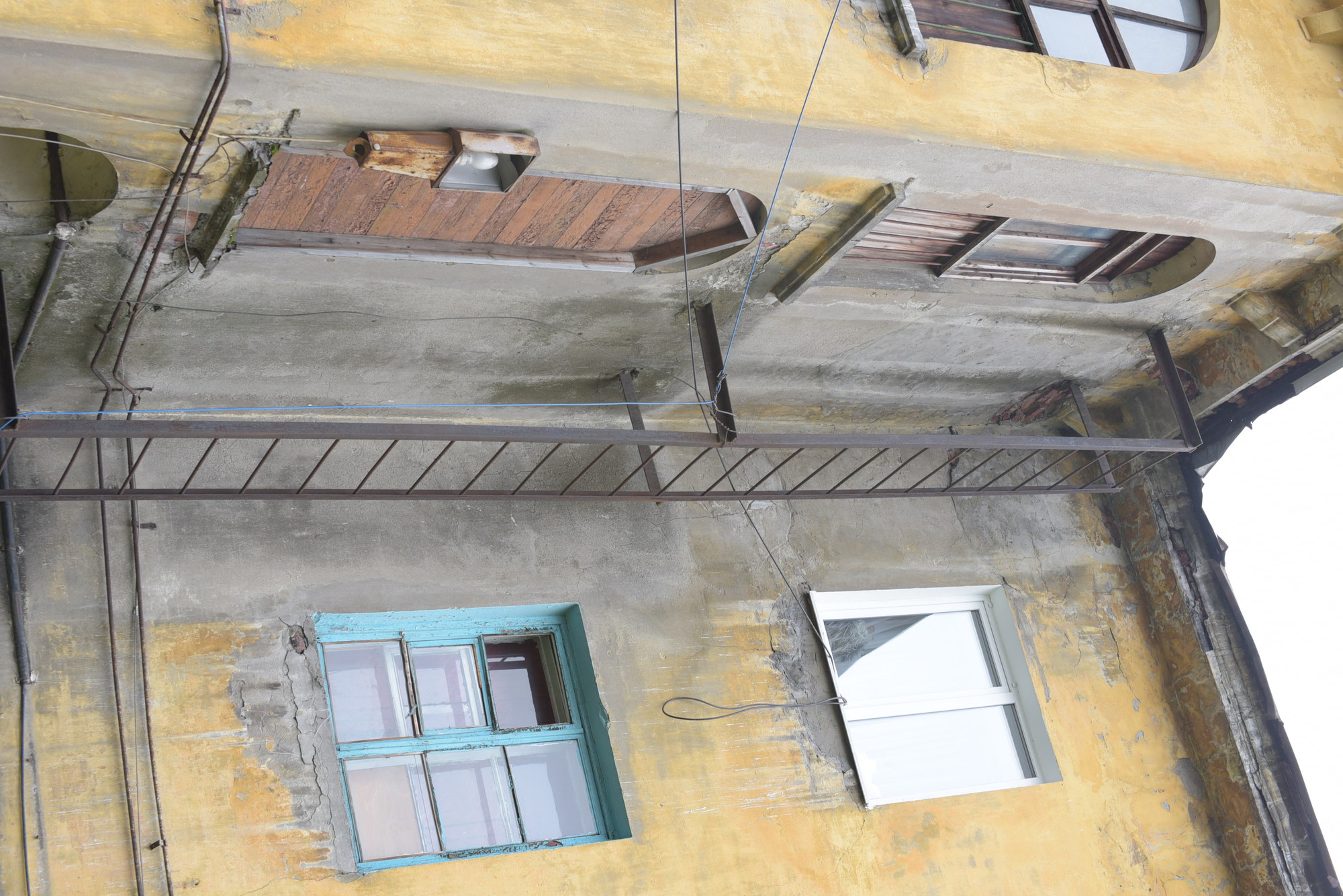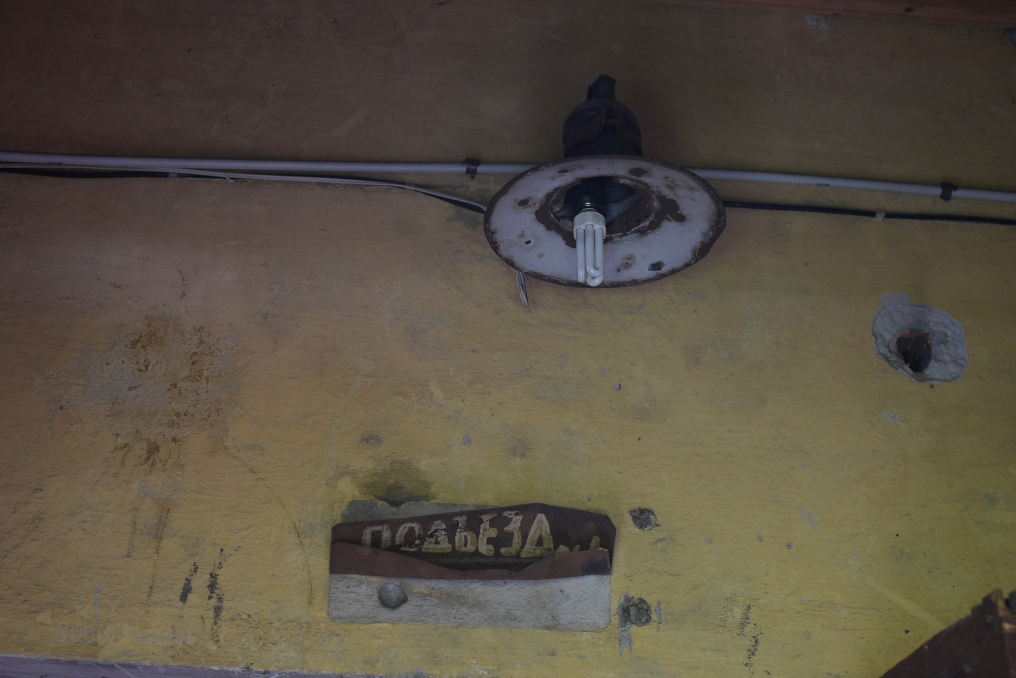 Придомовая территория зимой завалена снегом, а летом зарастает крапивой. Управляющей компании, по словам жителей, до этого дела нет. Развалившиеся лестницы у дома зимой покрываются льдом, перила сломаны и шатаются, освещения нет ни во дворе, ни в подъездах. Благо, в подъездах люди сами могут вкручивать лампочки.