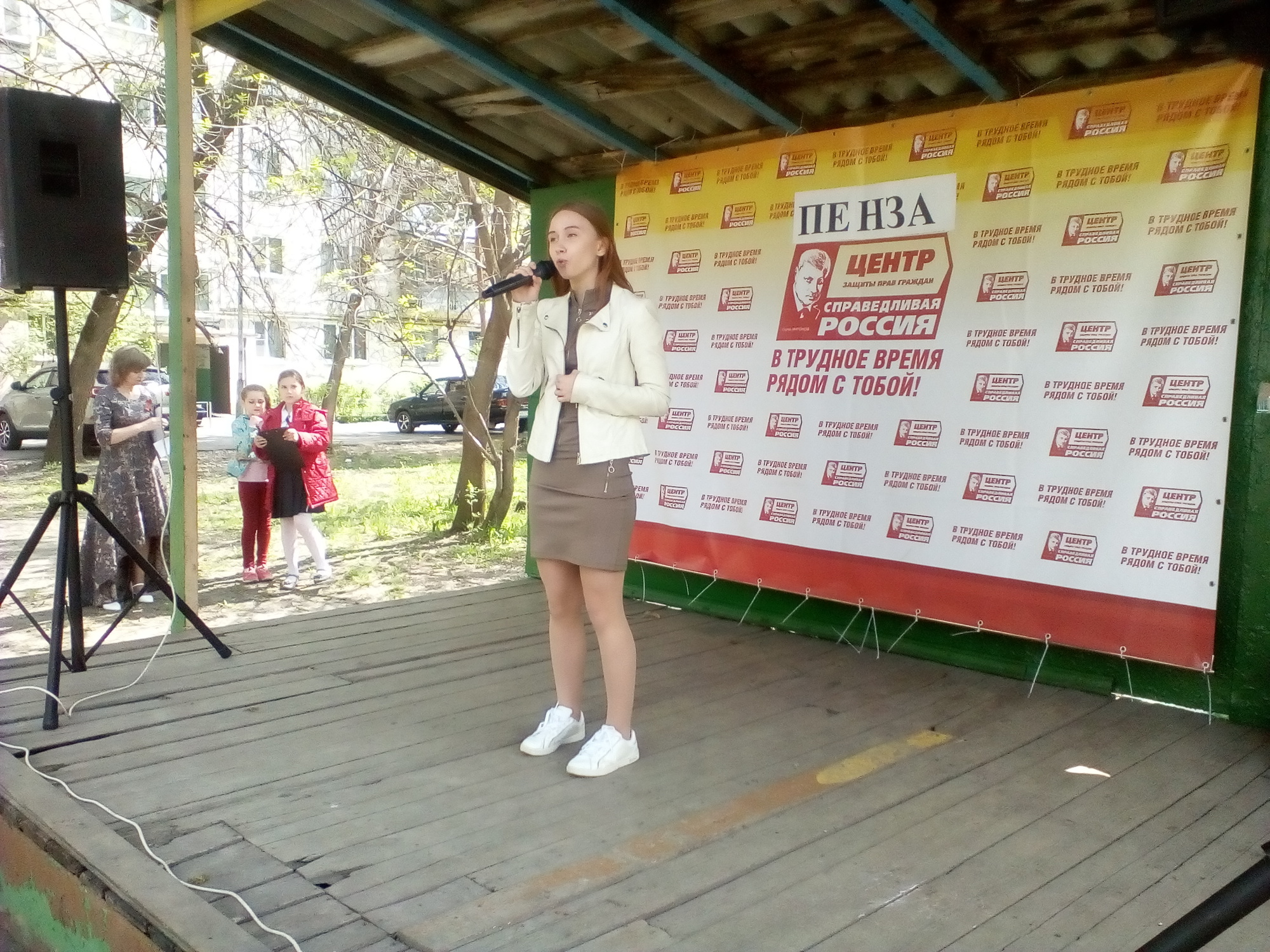 Вчера вся страна отмечала самый важный праздник для нашего отечества – День Победы. В честь этой даты жители пятиэтажки по улице Суворова, 190 решили провести небольшой концерт прямо у себя во дворе. С таким предложением активисты обратились в Центр защиты прав граждан «Справедливая Россия». Сотрудники Центра помогли пензенцам получить в администрации разрешение на проведение мероприятия, а также нашли и предоставили оборудование.