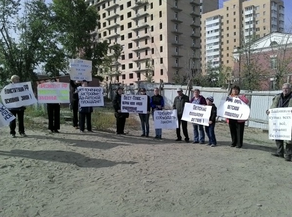 История протестных действий жителей улицы Конечной города Улан-Удэ продолжается. Накануне ими была объявлена голодовка в попытке отстоять детскую площадку на придомовой территории, где, по мнению жителей, застройщиком «Бэст Плюс» незаконно возводятся высотные дома.