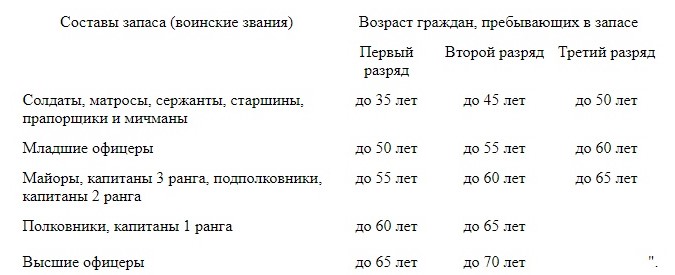 Согласно Указу Президент РФ № 647, призовут находящихся в запасе, то есть тех, кто отслужил срочную и альтернативную службу. Возраст и очередность призыва определяется разрядом. Их всего три, они приведены в п. 1 в ред. Федерального закона от 02.04.2014 № 64-ФЗ (см. в таблице).