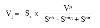 Чтобы рассчитать составляющую ∑Vi, нужно вычесть сумму объемов тепловой энергии, потребленной во всех квартирах. Для этого необходимо объем тепловой энергии, определенной по показаниям ОДПУ (Vд), разделить на общую площадь всего дома, в которую входят общая площадь всех жилых помещений и общая площадь помещений, входящих в состав общего имущества (Sоб+Sои), а затем умножить на общую площадь всех жилых помещений (квартир) (Sоб).