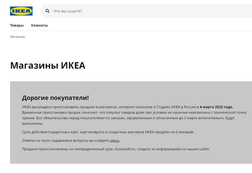 Уже сотни зарубежных магазинов одежды, обуви, косметики, техники, мебели объявили о своем временном уходе с российского рынка. Тем самым они лишили покупателей не только возможности купить товар, но и воспользоваться подарочными сертификатами. Компании могут уговаривать покупателя дождаться возобновления продаж, но точные сроки, когда это произойдет, никто не называет. Все это нарушает права потребителя!