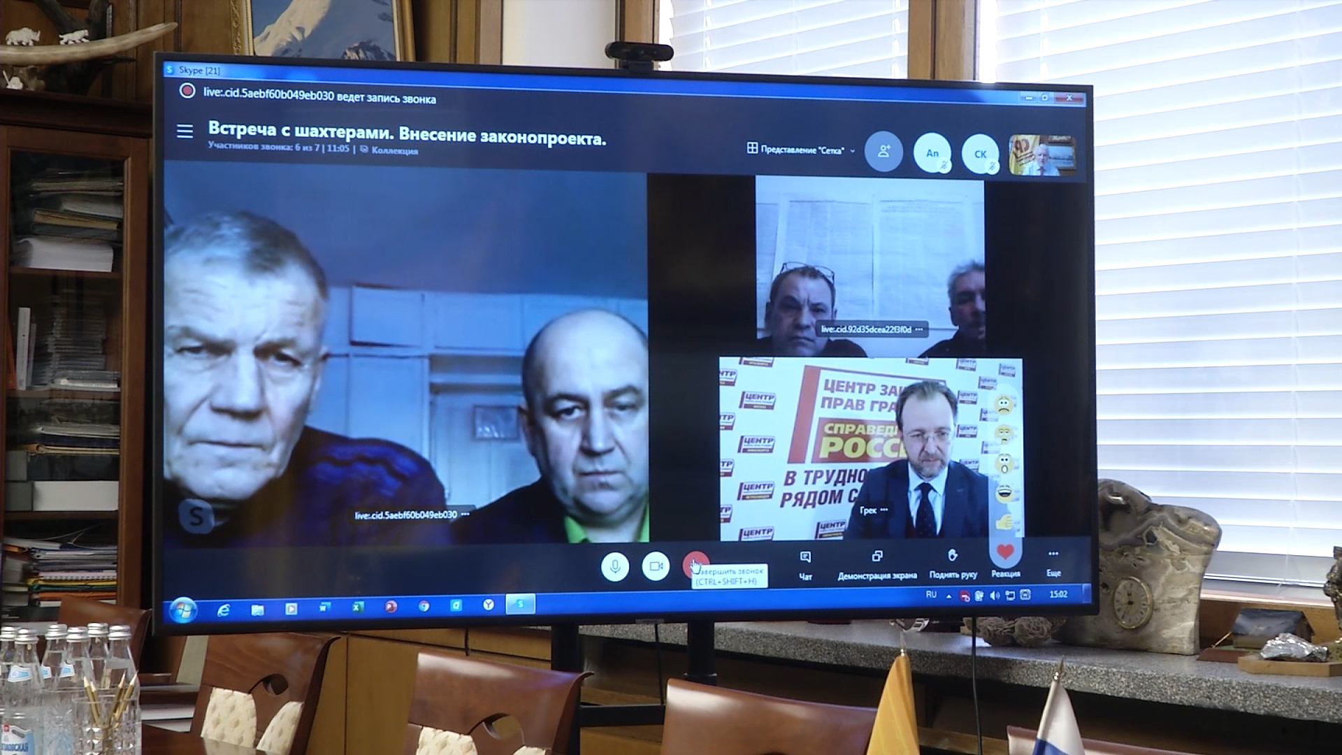 Фрагмент онлайн-конференции с уральскими шахтерами. Фото: domsovet.tv