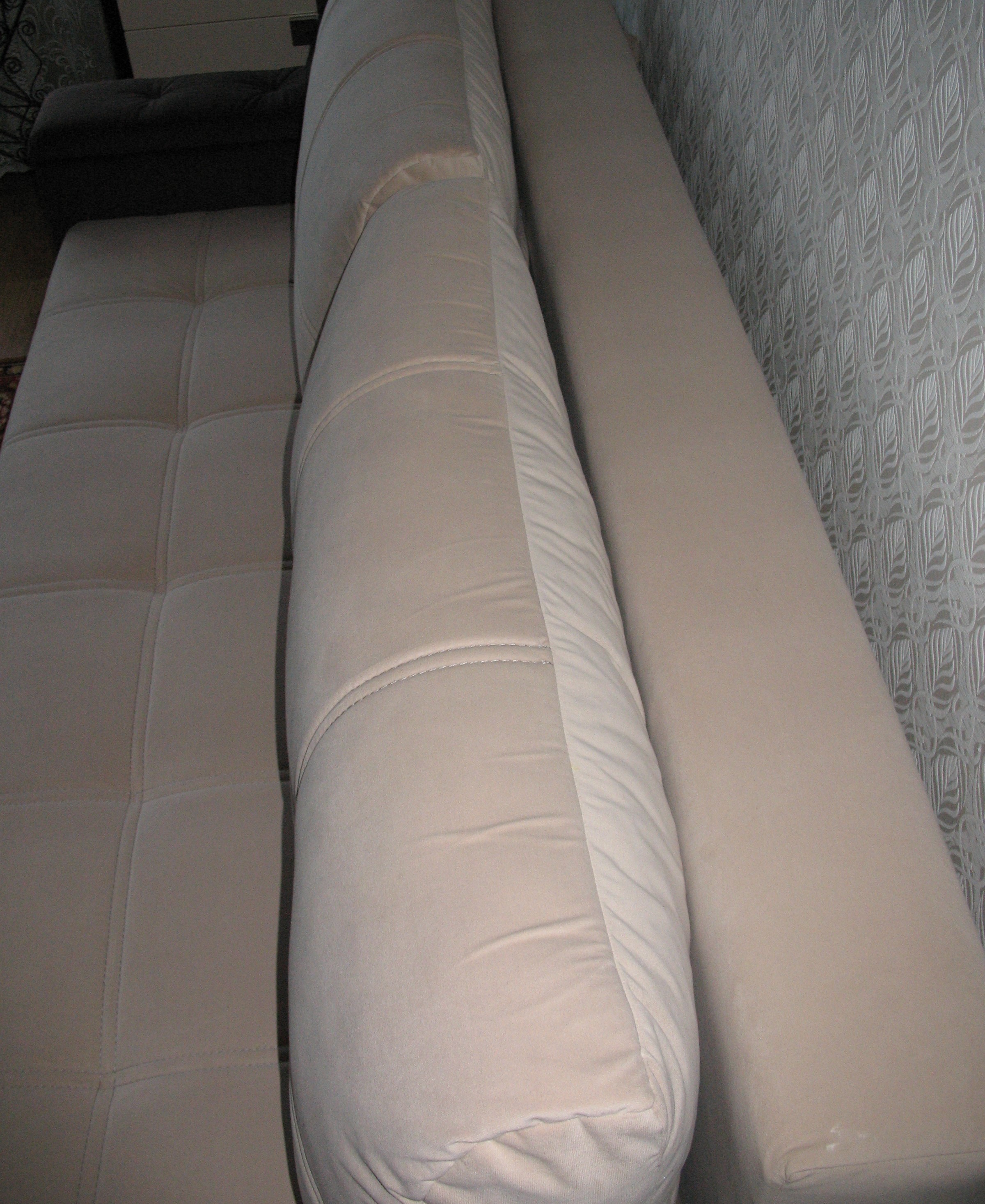 Но покупательницу ждал сюрприз. Диван, который ей доставили, резко отличался от образца в магазине – разный цвет обивки, хотя должен быть один тон, на подушках складки и морщины, сами подушки разного цвета, и из них сыпался наполнитель.