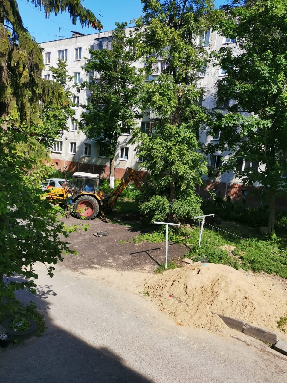 На фото: ремонтные работы во дворе пятиэтажки на улице Дейнеки, 40.
