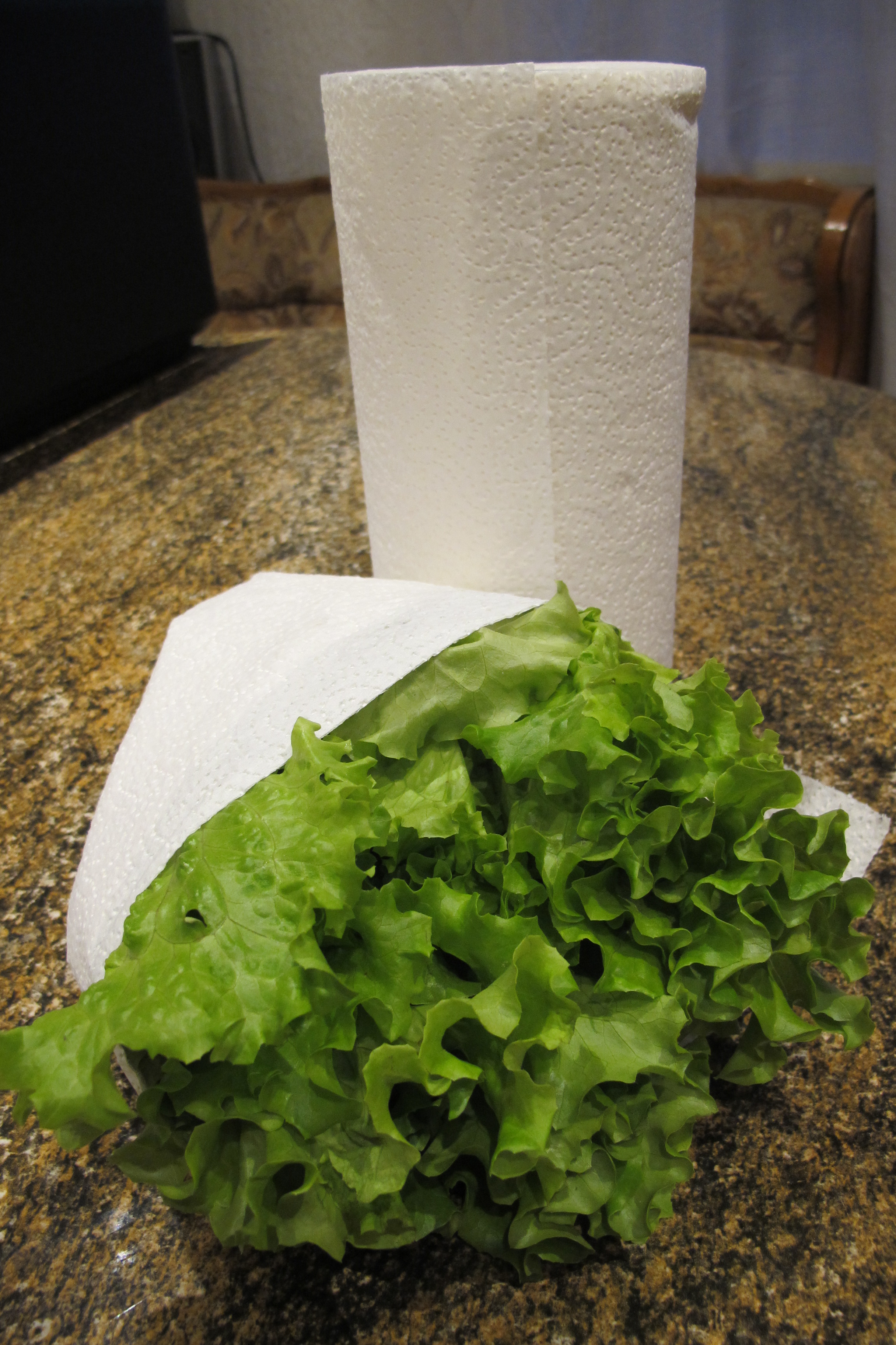 5. Заверните листья салата в сухое бумажное полотенце, после чего уберите их в пакет. Это вытянет влагу из листьев и сохранит свежесть на более длительный срок.