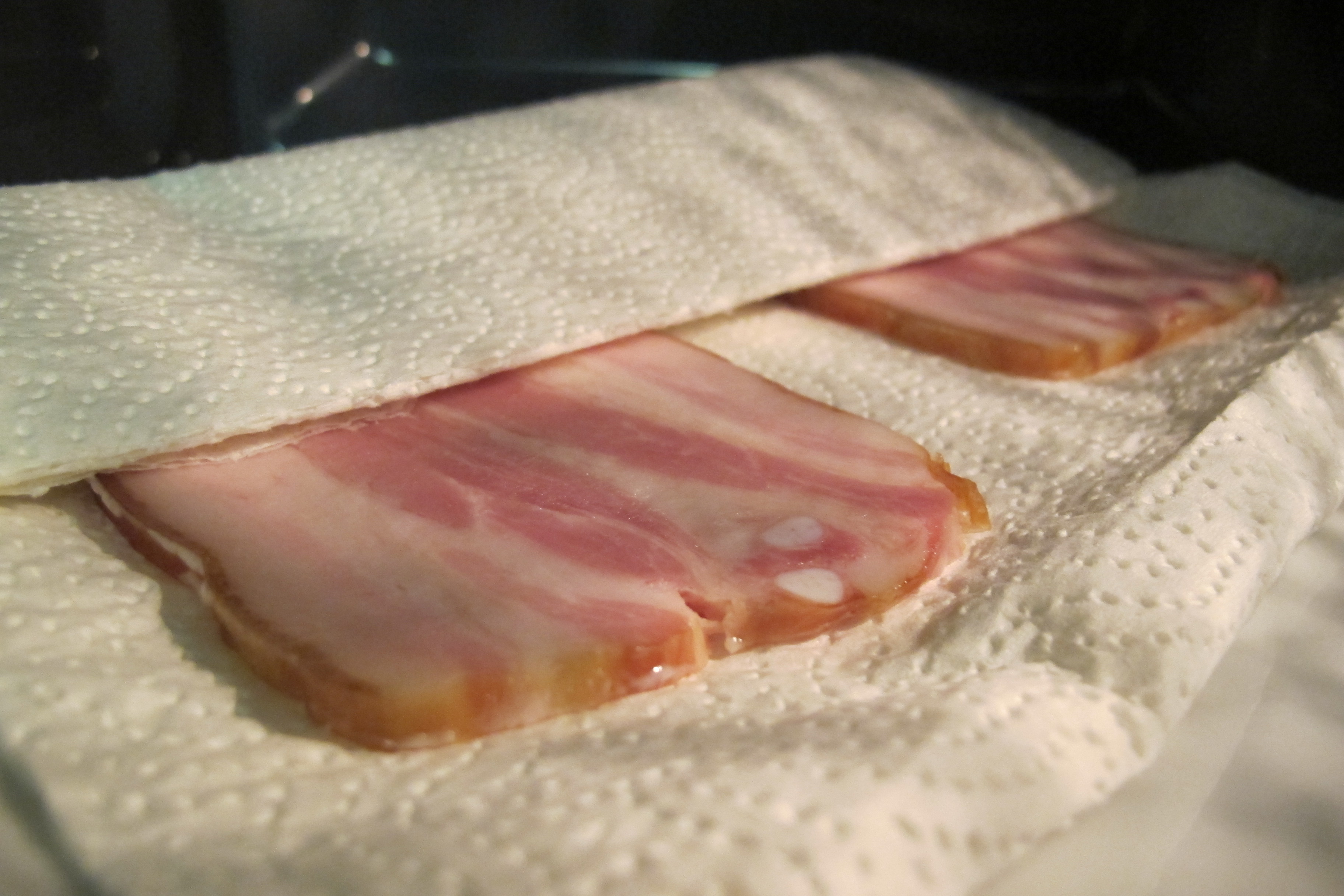 4. Готовьте мясо в микроволновке, например, бекон, положив его между полотенцами. Мясо будет сочным и при этом не таким жирным, а микроволновка чистой.