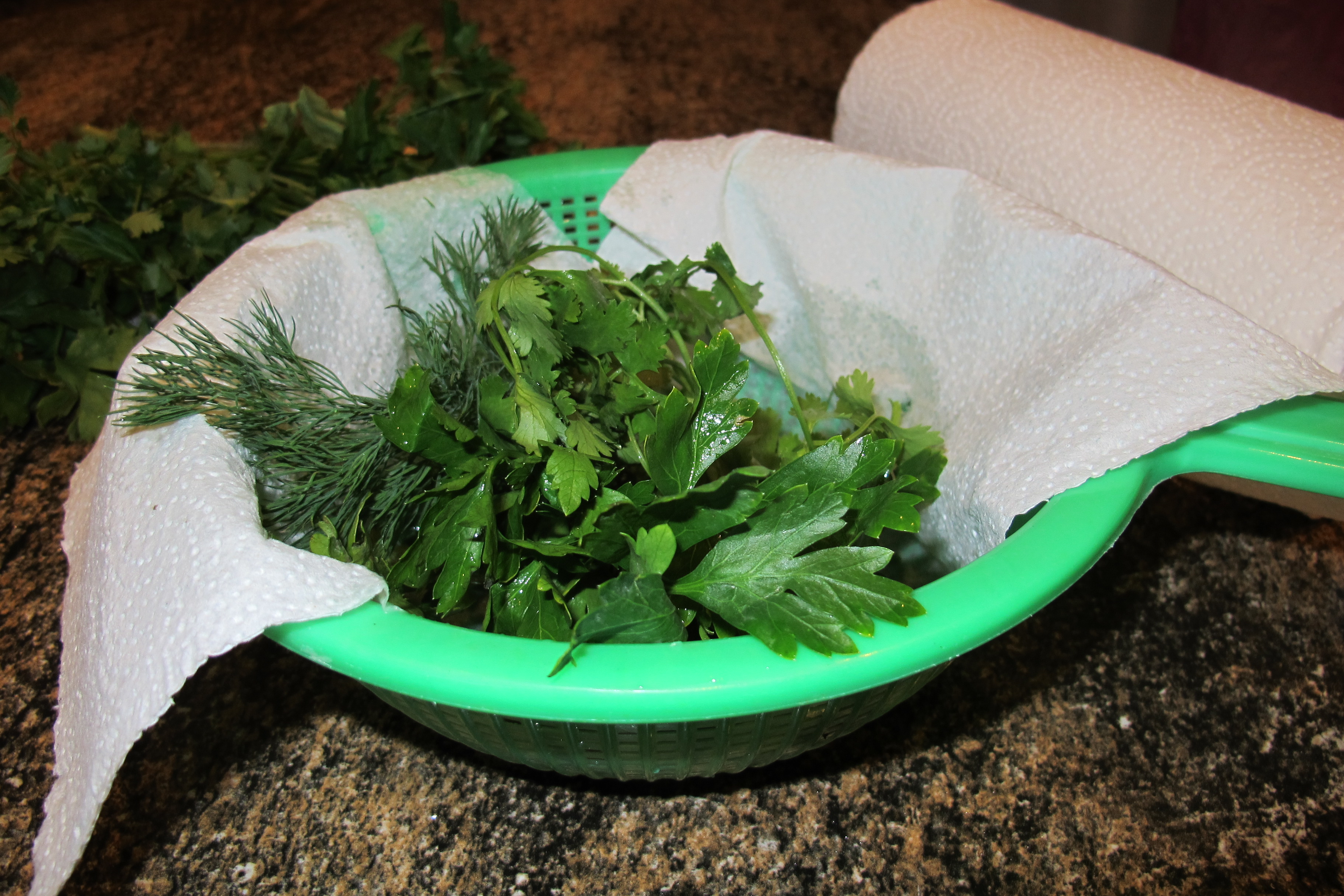 2. Промочите зелень в миске с водой, после чего заверните ее во влажное бумажное полотенце и положите в холодильник. Это продлит срок годности зелени и не даст ей быстро засохнуть.